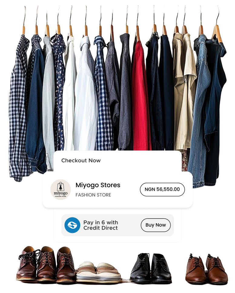 Join thousands of Nigerians shopping effortlessly with Credit Direct Checkout. Access over 1000 merchants, get credit of up to 1 million naira, and pay back in 6 monthly installments.